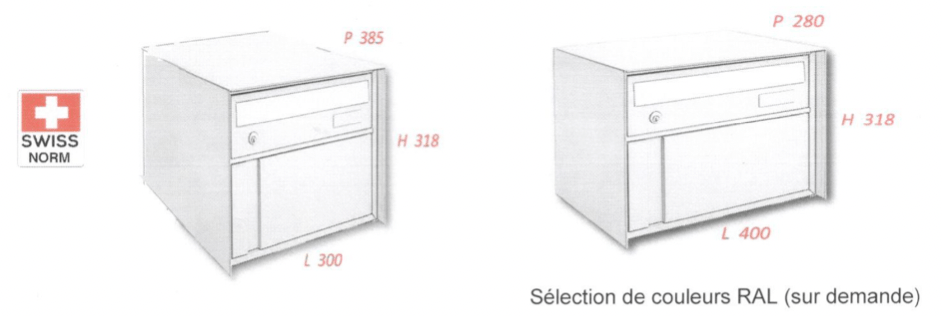 - Boîte au lettres ( couleur: grise, Fixation en applique )